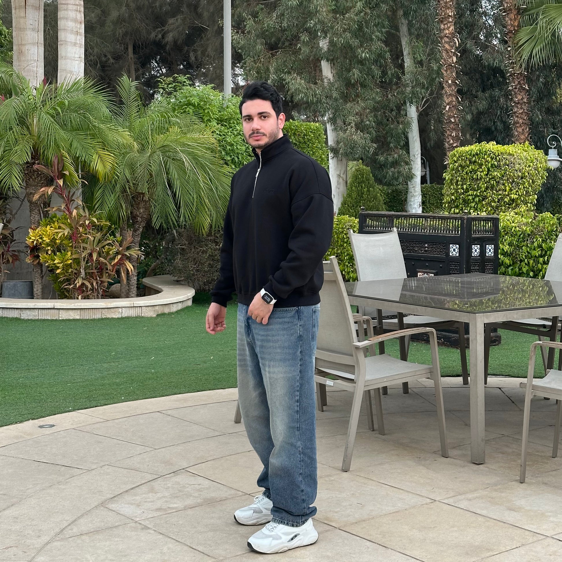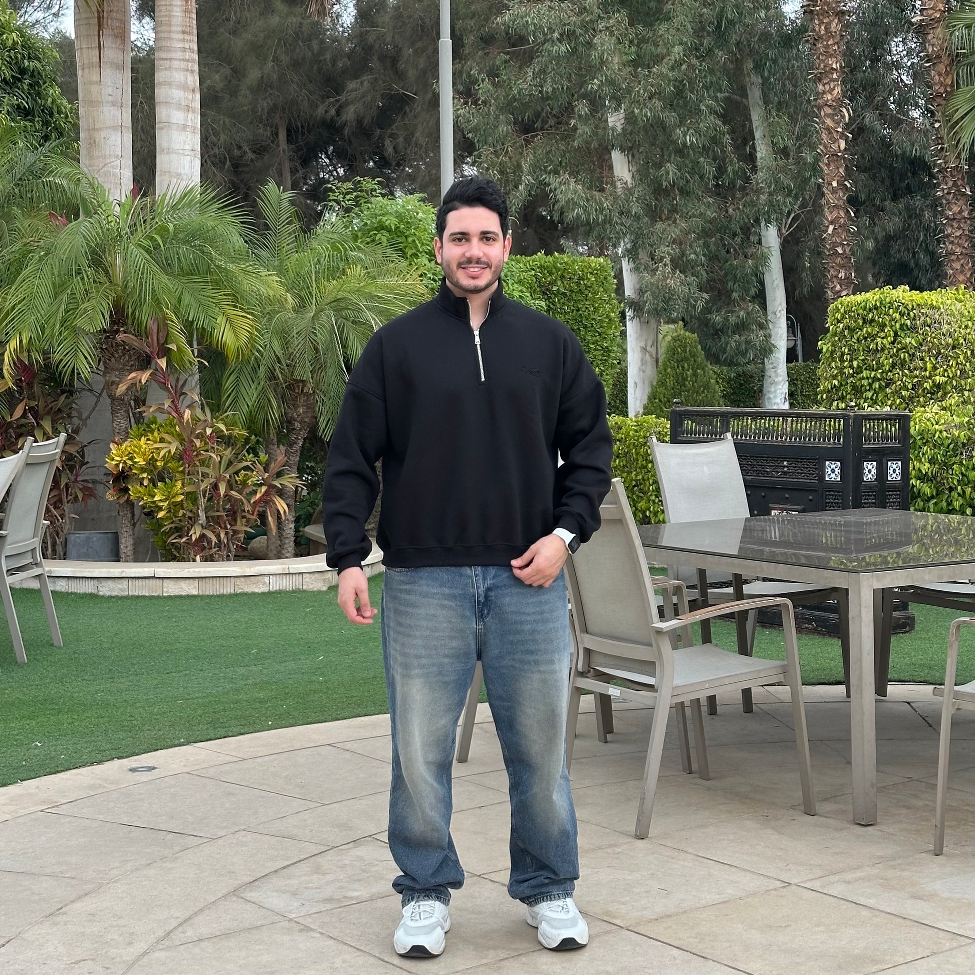 Unisex Black Quarter-zip sweater